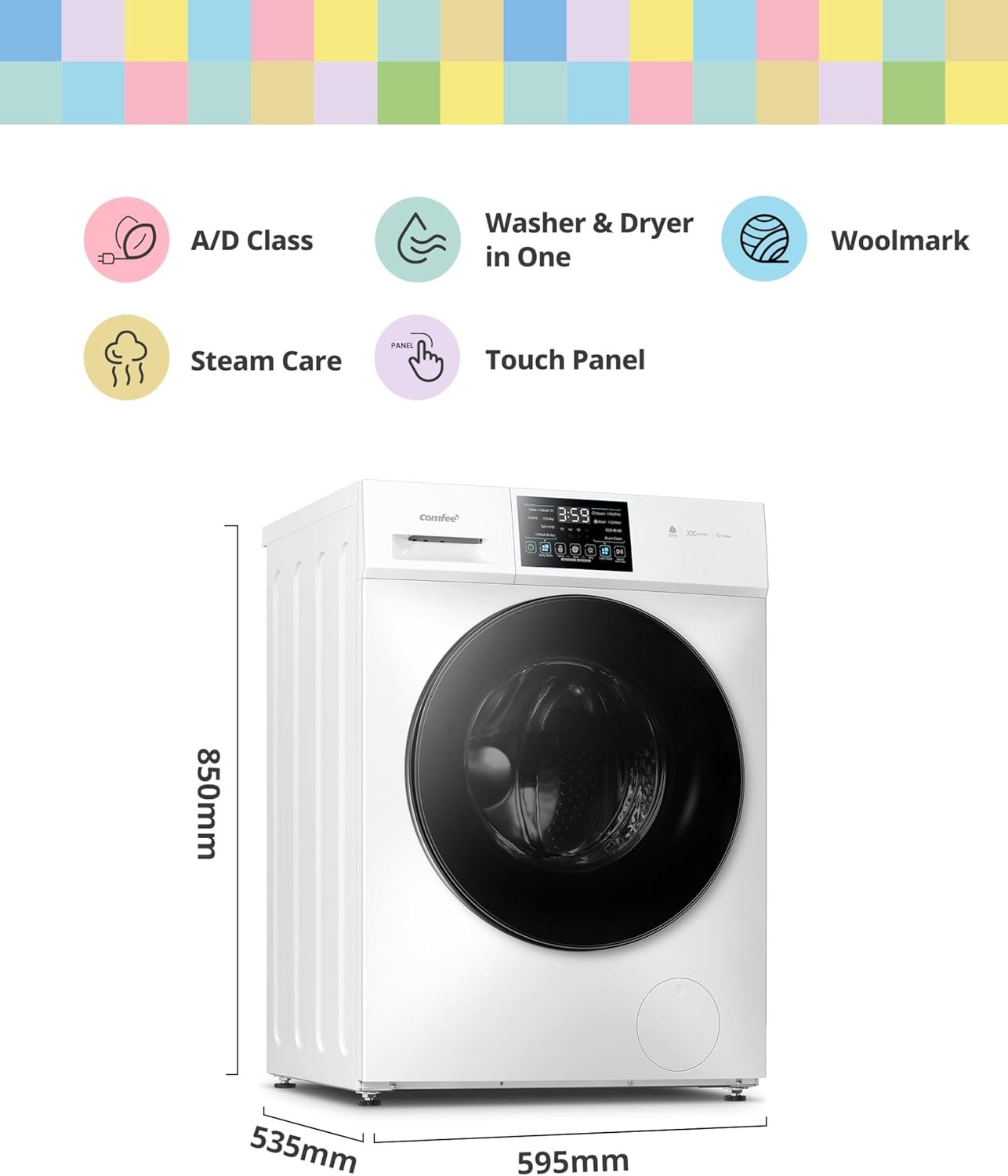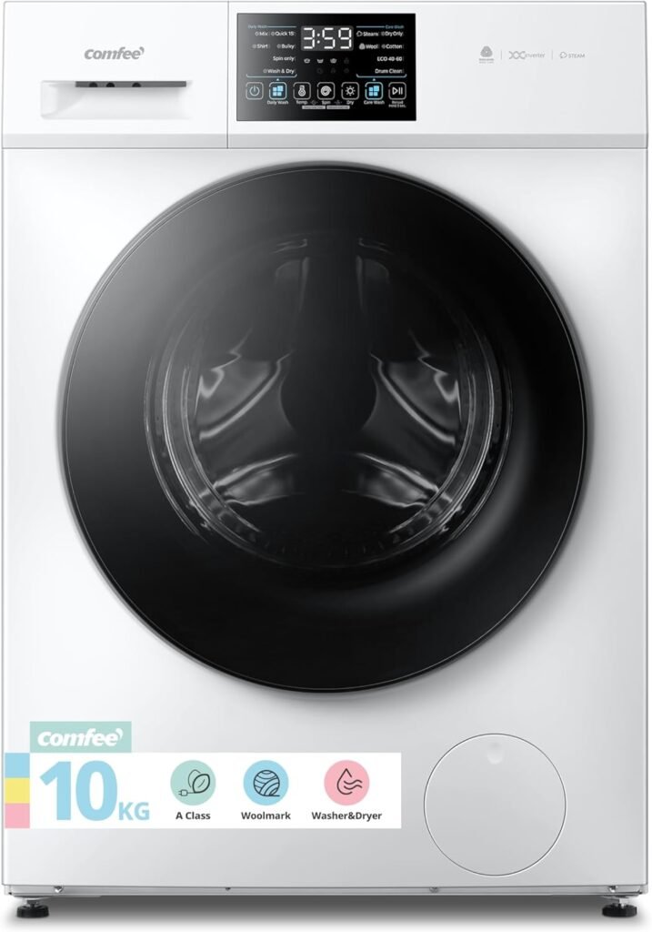 The COMFEE’ 10KG/7KG Washer Dryer delivers a balanced combination of capacity, efficiency, and convenience. Its large drum, steam functionality, and intelligent drying controls make it a capable all-in-one solution for everyday laundry needs.